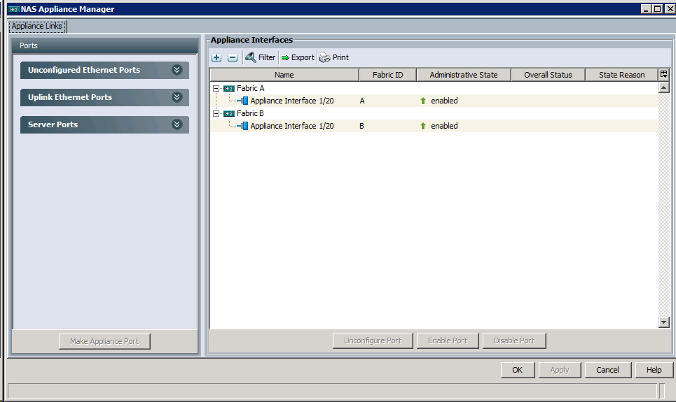 Would rather just do a port-channel to a 10G switch dedicated to each FI. Appliance are not something really integrated into UCSM yet in my opinion until the 2.0(x) code.