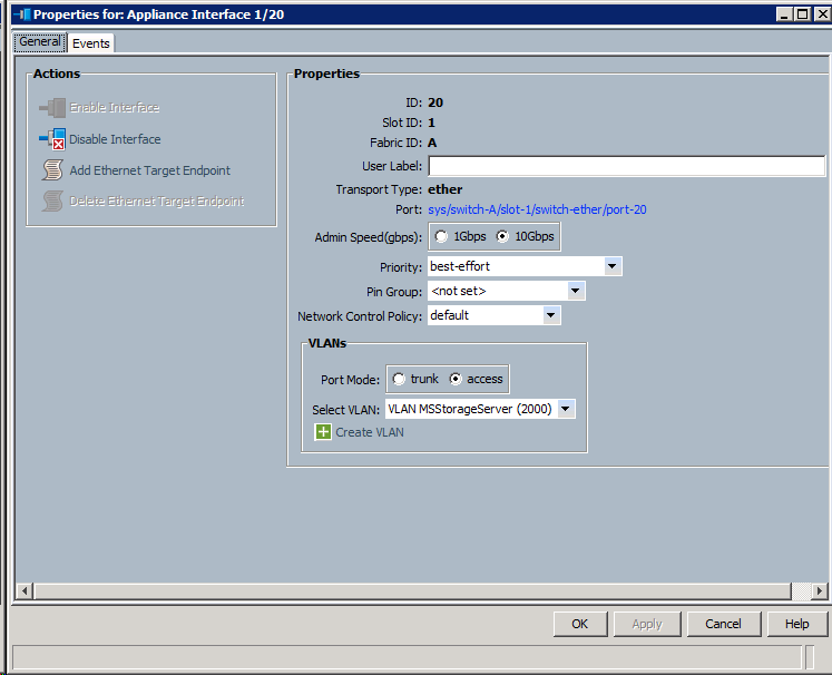 Create a vNIC template and bind to the VLAN created that matches the ID of desired Appliance VLAN. Select Native.